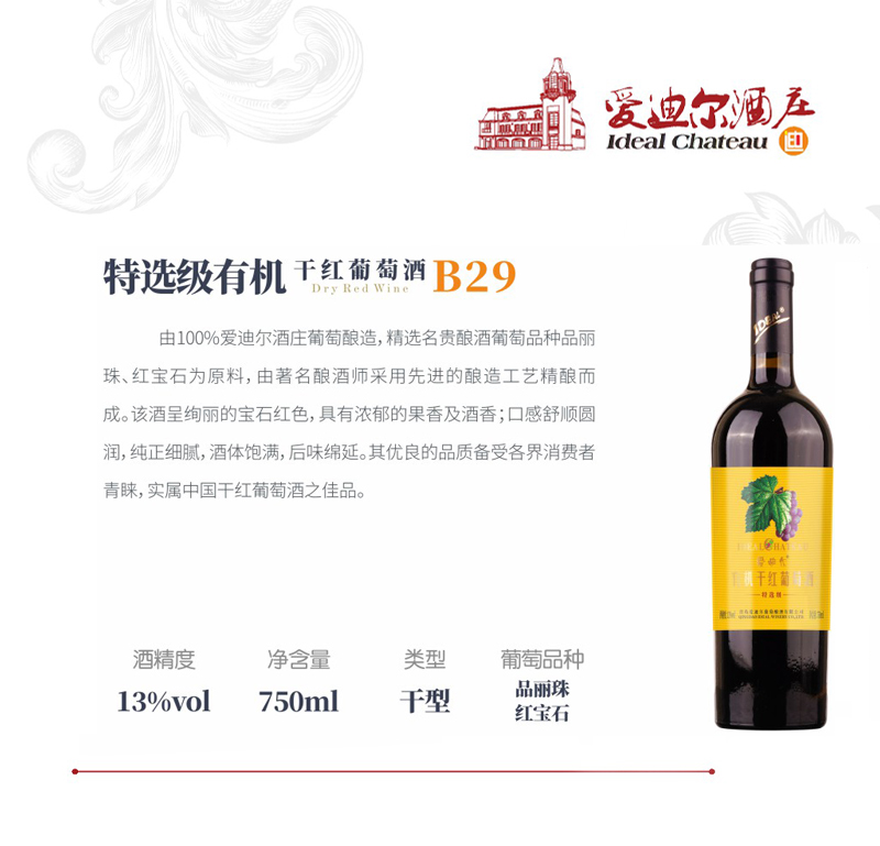 特选级有机干红葡萄酒B29
