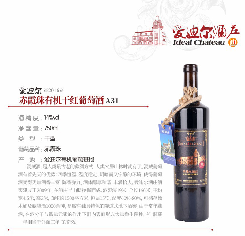 A31爱迪尔赤霞珠有机干红葡萄酒