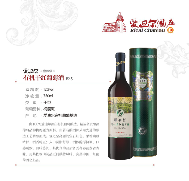 B08爱迪尔梅鹿辄有机干红葡萄酒